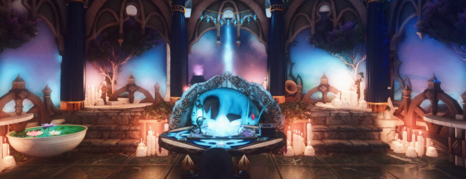 A brisk wind encircles you as you feel a chill up your spine. Strange, considering you are indoors. Soft, melodic singing whispers in your ear, fading into the air as quickly as it came. Something in your bones led you here and you see a woman with silken jet hair standing before you, facing away. She turns to you as the echoes of the song from before encircles you briefly once more. As you lock gaze with her golden eyes, she smiles at you warmly. Pulling out a card from her deck, she looks at it and then returns to you."Shall I read your fortune?"