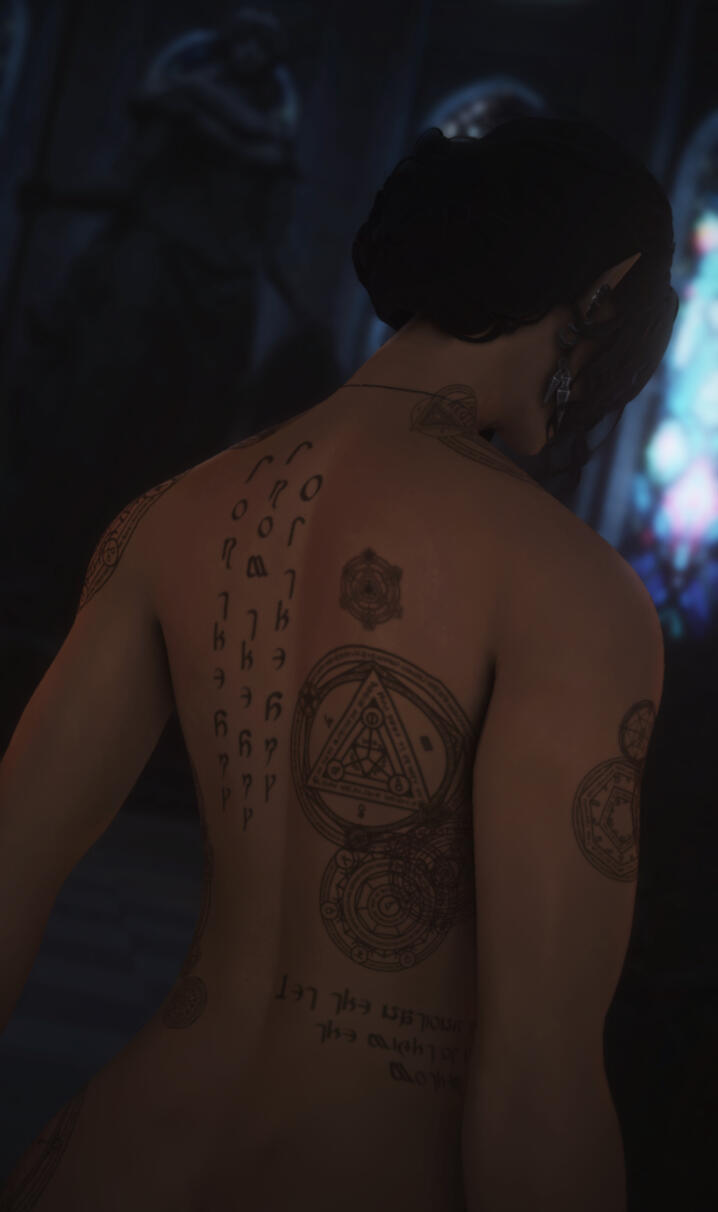 - Notable traits: Draconic-tinged eyes, blue blood, passages of The Enchiridion and Arcane Circles on her body.